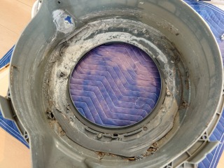 乾燥フィルター蓋裏には、大量の綿ぼこりが付着しています