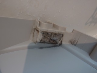 ヒートポンプから繋がる排気口ですが、目詰まりしておりました(画像は清掃前、清掃後)