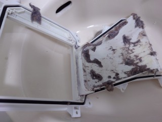 乾燥風路蓋側です(画像は清掃前、清掃後)