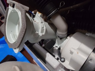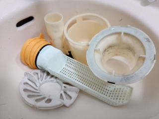排水ダクト、排水トラップ、排水(糸くず)フィルター、排水口、夫々清掃しました(画像は清掃前、清掃後)
