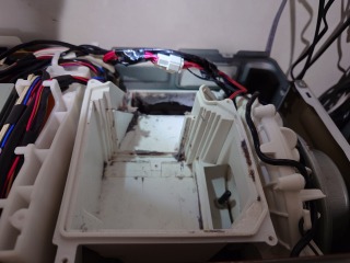 洗濯槽を覆っている前面カバー部には、僅かですが、綿ぼこりがありました
