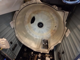 標準作業ですと、この状態で洗濯槽、洗濯水槽を清掃しますが、今回はエクセレントコースなので、洗濯槽を外しました。