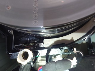 洗濯槽を覆っている前面カバー部には、綿ぼこりが付着していました。回転しない部位に付着する綿ぼこりは、乾燥時間にも影響を与えます。