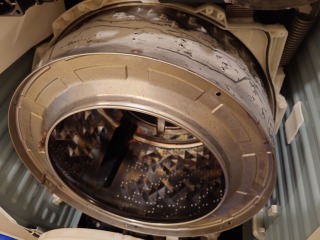 洗濯槽、洗濯水槽共、汚れやカビが確認できます。