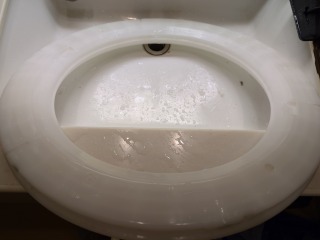 排水ユニットは、水圧を掛けながら排水弁を手動で操作し、清掃しました。