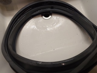 洗濯槽を遠心力の力で、スムーズに回すための流体バランサーです(画像は清掃前、清掃後)