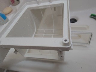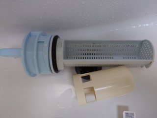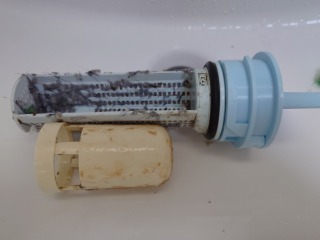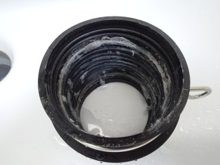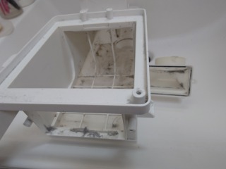 排水ダクト、排水(糸くず)フィルター、排水トラップ、排水口、夫々清掃しました(画像は清掃前、清掃後)