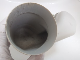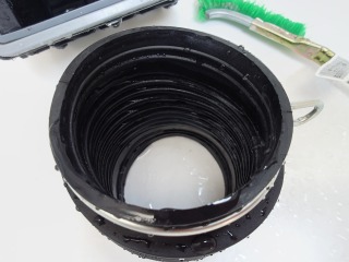 排気ホースを外したところです(画像は清掃前、清掃後)