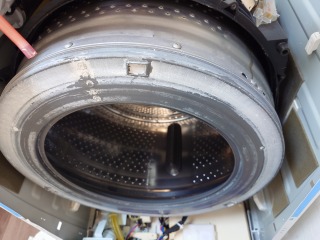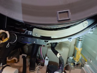 洗濯槽を覆っている前面カバー部には、大量の綿ぼこりが付着していました。
