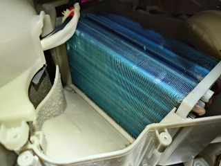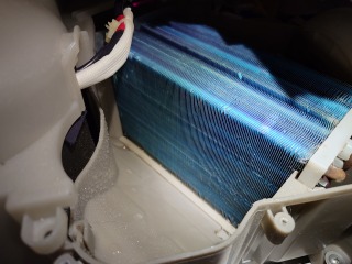ヒートポンプ内部を清掃した画像です。この部位は、乾燥に直接影響します。