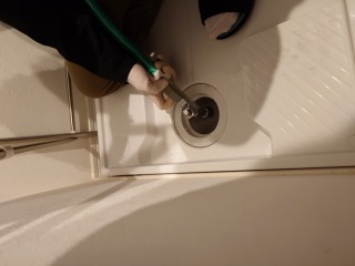 排水ユニットは、水圧を掛けながら排水弁を手動で操作し清掃しました。