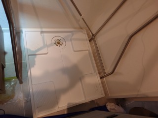 ヒートポンプユニット交換のために洗濯機を前に移動したので、下側に配置されている排水口も余裕をもって清掃できました。