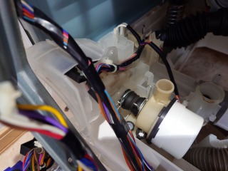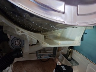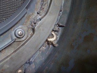 洗濯槽を覆っている前面カバー部には、綿ぼこりが付着していました。
