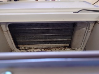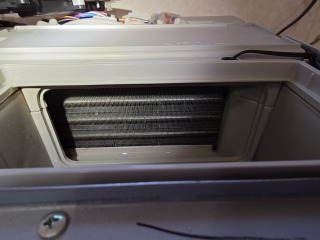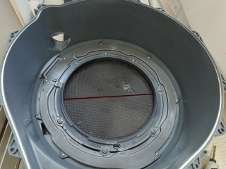 この機種のヒートポンプ内部清掃は、標準作業です。殆ど乾燥運転を使用していないこともあり、とてもきれいな状態でした。パナソニックは、この次の機種(2012年発売)から、エバポレーター(熱交換器)の自動洗浄を実現していますが、この年の機種までは、自動洗浄が付いておらず、汚れやすいのです。