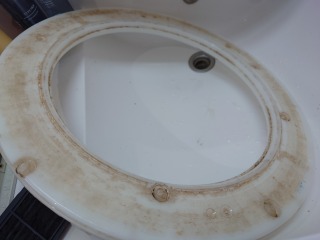 また、このカバーには、全方位シャワー用の水路が組み込まれているのですが、そのパッキンがはみ出してしまっていました(画像白い部分)