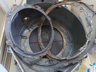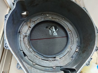 この当時のカバーは、分解できる構造のため、全方位シャワー水路を分解しました。かなり綿ぼこりが付着しています。