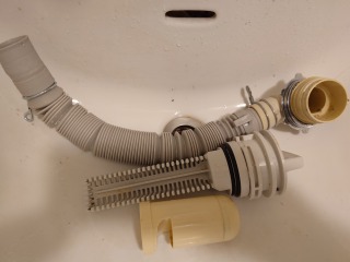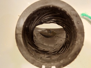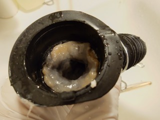 排水ダクト、排水(糸くず)フィルター、排水トラップ、夫々清掃しました(画像は清掃前、清掃後)