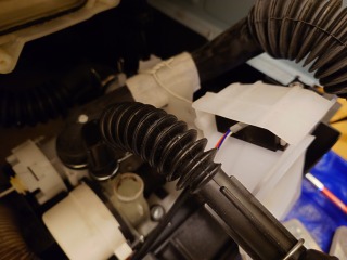 エバポレーター(熱交換器)洗浄後、元の位置に戻しました。ドレン、ドレンホースに相当する部分も清掃しています。