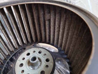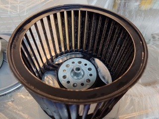 毎年清掃を行っているので、きれいな方ですが、シロッコファンの羽の一枚一枚を見ると、油汚れが付着しているのが分かります。