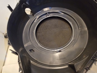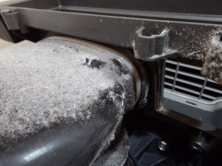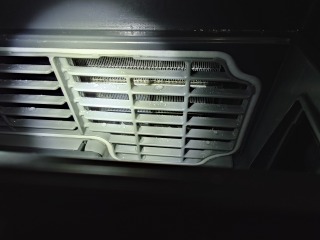 この機種の乾燥方式は、キューブルシリーズと同じ、低温風パワフル乾燥方式です。風の勢いが強いので、綿ぼこりも付着します。ヒーター入口も半分ほど、目詰まり状態でした。