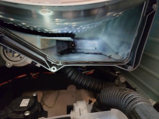 洗濯槽を覆っている前面カバー部には、綿ぼこりが付着していました。また、全体的に茶色く着色がありました。