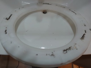 洗濯槽、洗濯水槽に、カイロの中身らしき物がありました。使い捨てカイロの中身は、鉄粉、活性炭、塩類らしいので、キレイに取り除きたいものです。