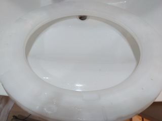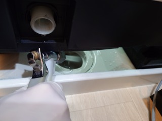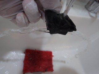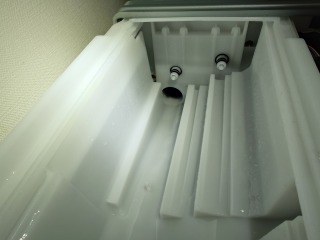 自動窓パッキング洗い機能は、最上部から左右に水を分けて放出する方式です。詰まりが無いように、左右振り分け部を丁寧に洗いました。