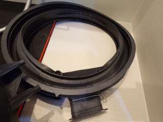 窓パッキンは、外して清掃しました(画像は清掃前、清掃後)