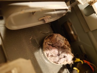 排気ホースを外したところです。大量の綿ぼこりが付着していました。これは乾燥に影響すると思います。