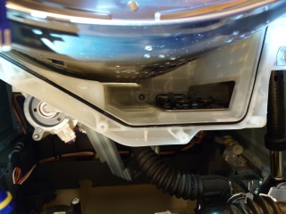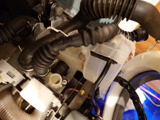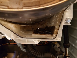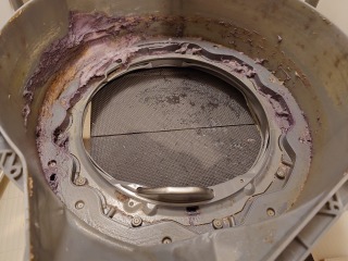 洗濯槽を覆っている前面カバー部には、大量の綿ぼこりがあり、排気ダクト部分は、完全に目詰まり状態でした。