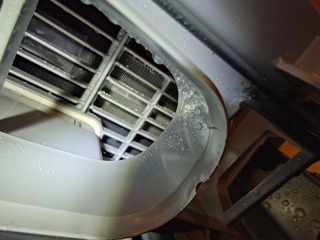 排気ホースを外した、ダクト側です。やはり綿ぼこりが付着していました。