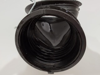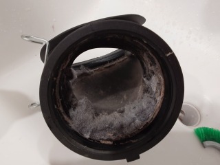 ヒートポンプに繋がっている排気ホースは、清掃しました(画像は清掃前、清掃後)