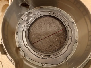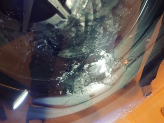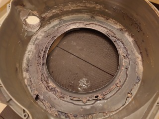 分解前動作確認時に、全方位シャワーが出ておらず、洗濯槽最下部から噴水のように出ているのが確認できました。これを修理するのは、洗濯槽を覆っている前面カバー部の交換が必要です。そこで、今回清掃をせず、ヒートポンプユニットと洗濯槽カバー(前面部)の交換を提案させていただきました。清掃しなくても、汚れの酷いヒートポンプユニットと、洗濯槽カバーが新しくなるため、お客様にとってメリットがあります。