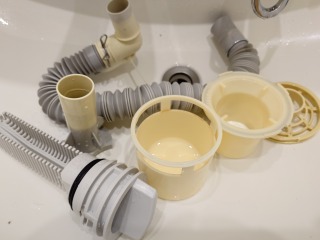 清掃なしと言っても、洗濯機下にある排水口をそのままというのは、気が引けます。結局清掃しました(画像は清掃前、清掃後)