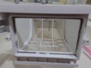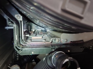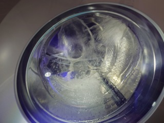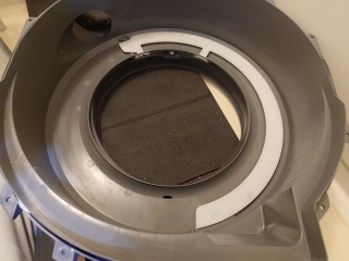 洗濯槽を覆っている前面カバー部には、綿ぼこりが付着していました。まだ新しいので、大量という訳ではありません。