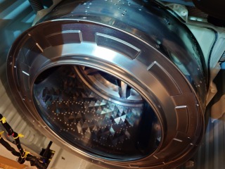 分解前の動作確認時に、洗濯槽最下部から、前面窓側に向かって、噴水のように水が噴き出しているのが確認できました。