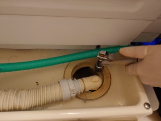 排水ユニットは、水圧を掛け、排水弁を手動で操作しながら清掃しました。