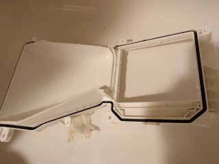 乾燥風路の蓋部も清掃しました(画像は清掃前、清掃後)