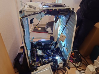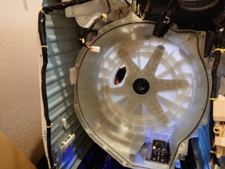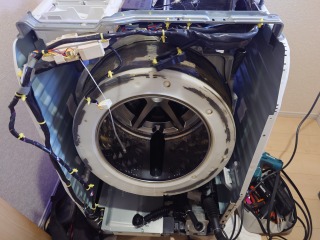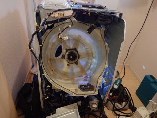 交換のため、洗濯水槽も取り外しました。洗濯機の中は、空っぽです。