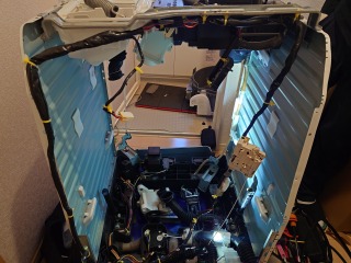 エバポレーター(熱交換器)を治具を外し元の位置に戻しました。