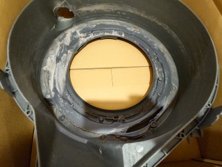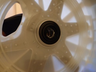 洗濯水槽に組み込まれたベアリングの周りに、洗濯槽後ろ側との擦り跡が付いています。