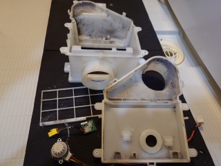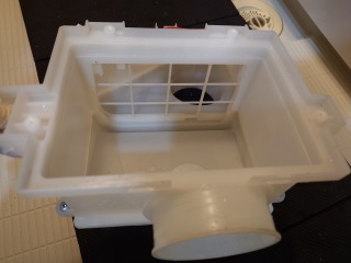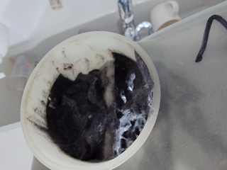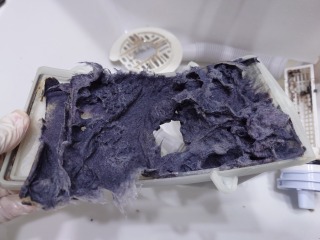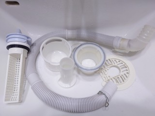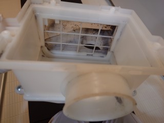 排水ダクト、排水(糸くず)フィルター、排水トラップ、夫々清掃しました(画像は清掃前、清掃後)