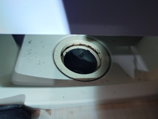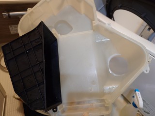 洗濯水槽側、排気口の清掃をしました(画像は清掃前、清掃後)