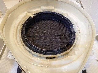 排気口には、あまりなかった綿ぼこりも、その蓋側にはギッシリ綿ぼこりが付着していました。