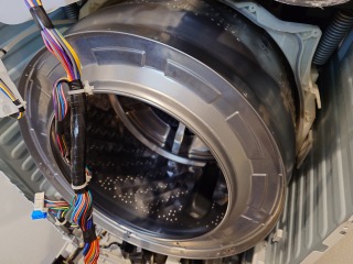 洗濯槽、洗濯水槽共汚れが確認できます。