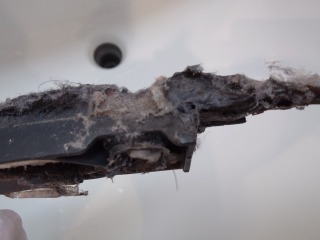 窓パッキンは、外して清掃しました(画像は清掃前、清掃後)