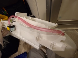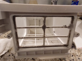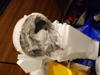 乾燥風路を外したところです。大量の綿ぼこりが付着していました。