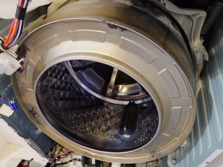 洗濯槽、洗濯水槽共汚れが確認できます。