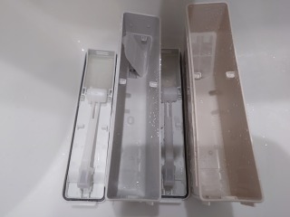 洗剤(柔軟剤)外ケースを洗浄しました(画像は清掃前、清掃後)