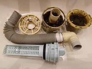 排水ダクト、排水(糸くず)フィルター、排水トラップ、排水口、夫々清掃しました。